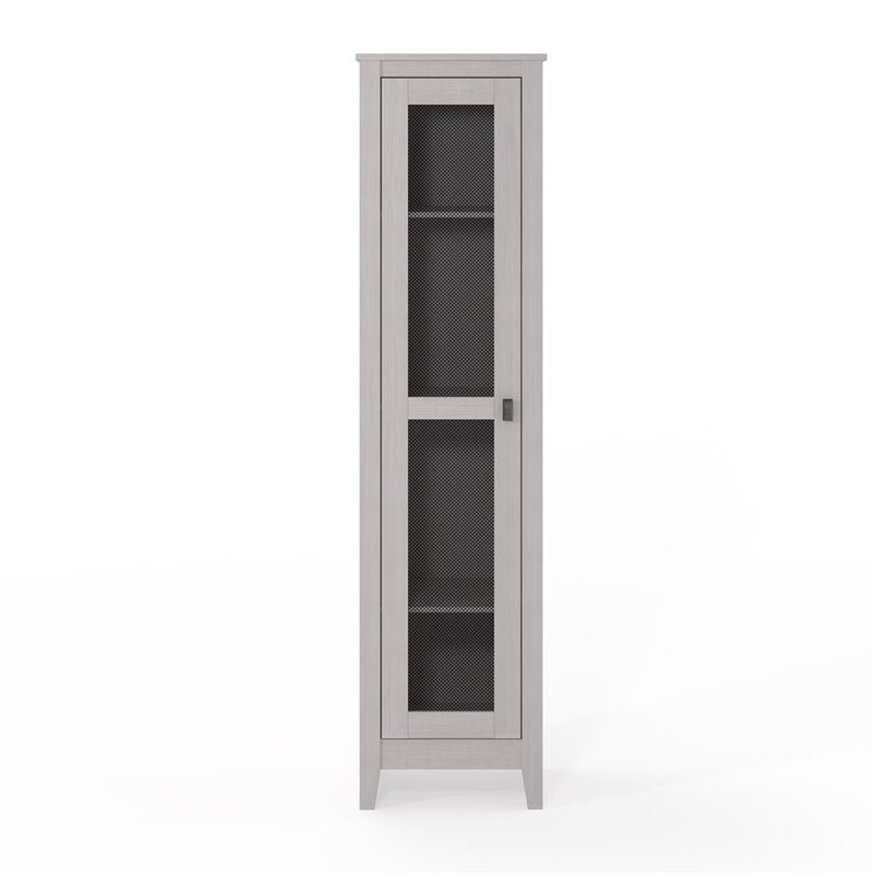 The SystemBuild Braewood 18” Wide Storage Cabinet is a stylish way to stay on top of your organization. The rustic barn style design and sleek tapered feet gives the look of an old weathered cabinet but the sturdy laminated particleboard and MDF make this Cabinet the perfect piece to house your home office supplies, extra linens, seasonal clothing, nonperishable food and more! The door features a metal mesh insert for a unique look and modern touch. Open up the door to 4 spacious shelves, 2 adjustable, to fit items of differing sizes. The off-white woodgrain finish will bring a nice rustic appeal to your space. A wall anchor kit is included to secure the Cabinet to the wall and prevent tipping injuries. The Braewood Cabinet ships flat to your door and is recommended to be assembled and moved by 2 adults. After assembled, this Cabinet measures to be 71.9”H x 18.2”W x 15.8”D.
