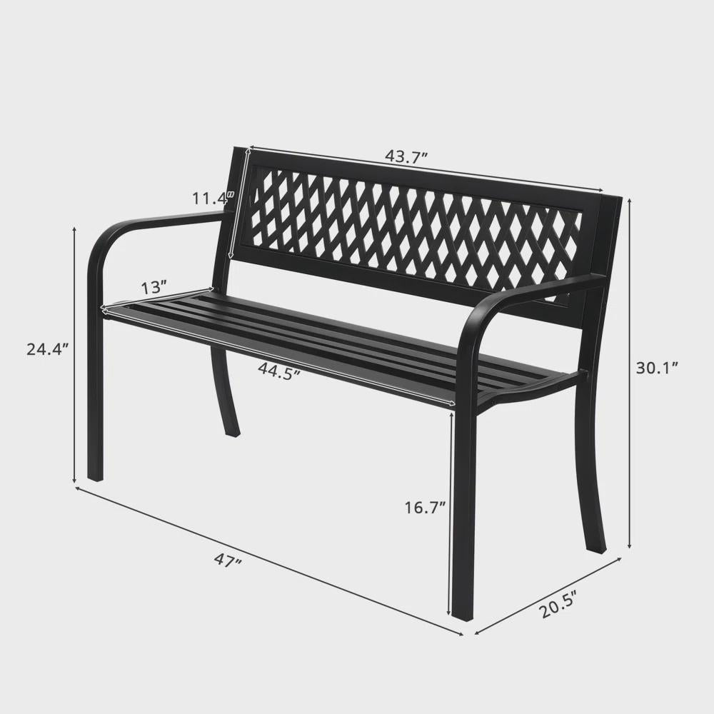 - Bearing Capacities: This garden bench has a size 47" x 20.5" x 30", and a sturdy Steel design it comes with a strong bearing capacity of 500, allowing 2 to 3 medium-sized adults to take a rest