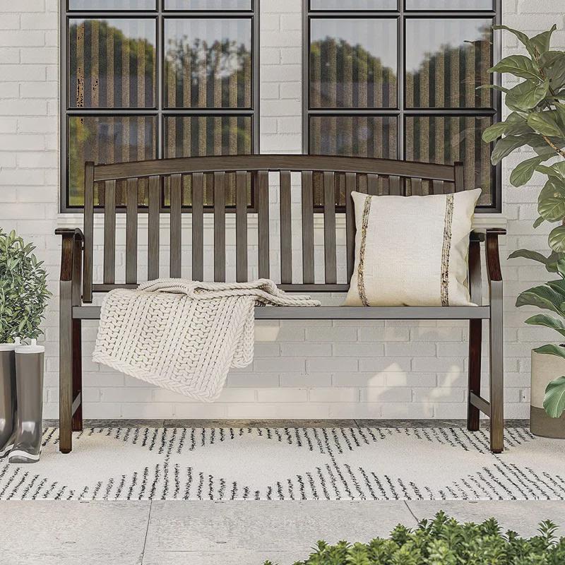 - Strong Structure: This durable, full-size patio bench is made of thickened iron pipes and aluminum back and seat, wider and stronger armrests, and a backrest design that makes you feel more comfortable.