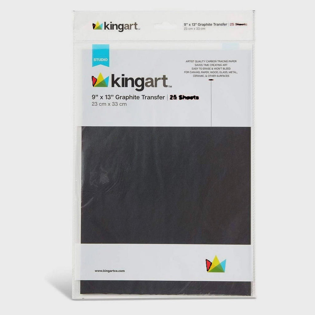 The Kingart Graphite Transfer Paper holds (25), 9" × 13" sheets with enough graphite so they can be used multiple times. Our Transfer Paper is wax-less and grease-less, smudge-proof and it won't bleed through paint. The perfect way to transfer sketches, drawings and photographs onto other surfaces. Every line, no matter how fine, shows up and any stray marks erase cleanly. Perfect for professionals and beginners looking to enjoy new levels of creativity.