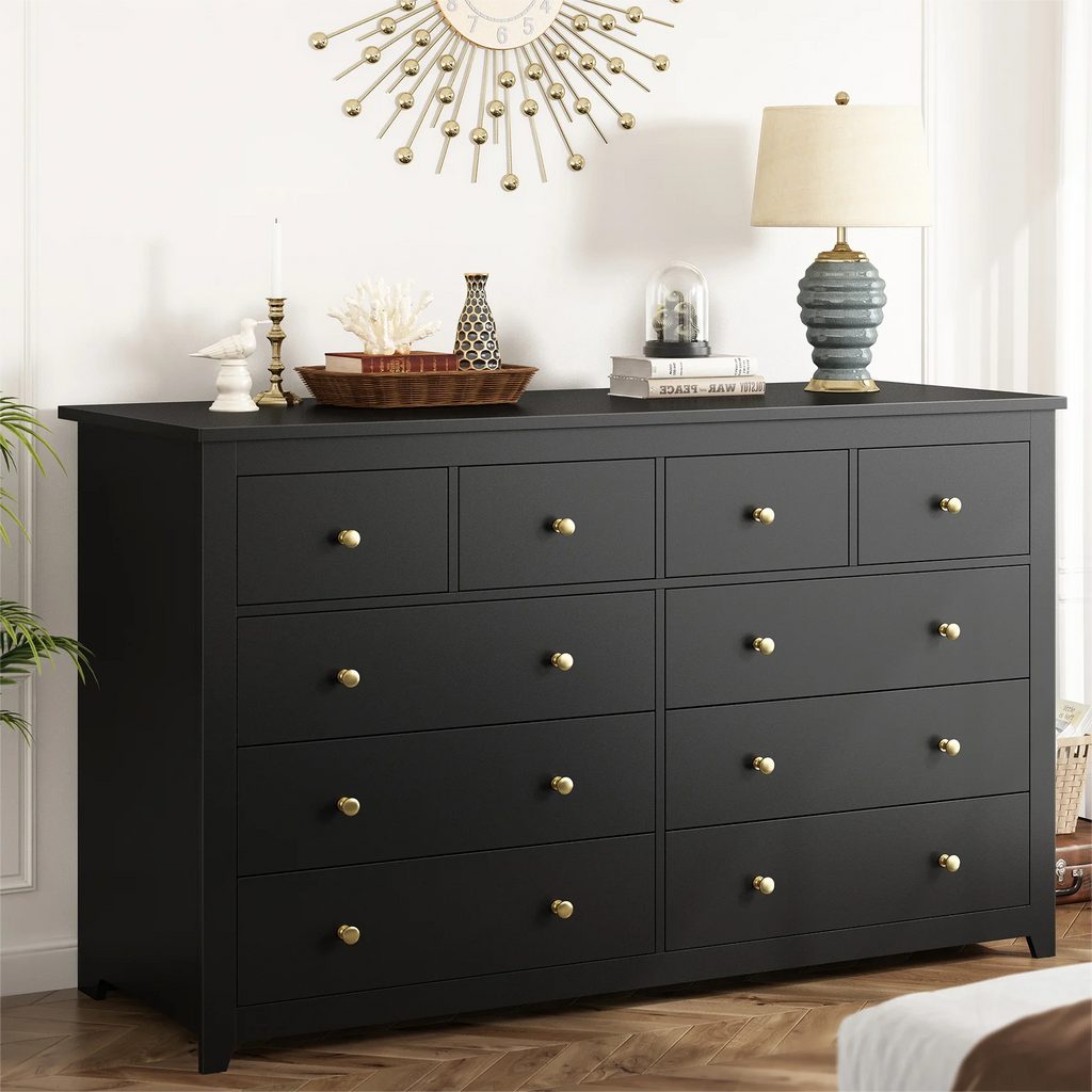 Black Dresser for Bedroom 10 Deep Drawers Modern Wood Dressers & Chests of Drawers Wide Dresser