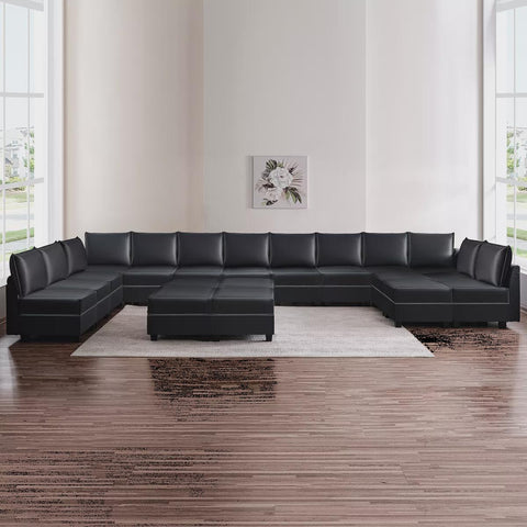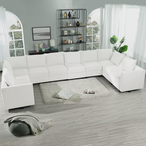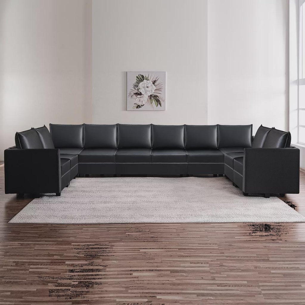 Number of Pieces: 10Seats up to: 10Dimensions (Overall): 35.03 inches (H) x 164.38 inches (W) x 87.01 inches (D)Seat Dimensions: 19.2 inches [D]Weight: 580 poundsPiece 1: Armless Sectional Pieces: 25.79 inches (W) x 35.03 inches (H) x 30.3 inches (D)Piece 1 Weight: 45 poundsPiece 2: Arm Chairs: 5 inches (W) x 27.16 inches (H) x 30.3 inches (D)Piece 2 Weight: 24 poundsMaterial: Wood (Frame)Suggested Age: Adult (18 Years and Up)Features: Attached CushionsTextile Material: 100% Faux LeatherFurniture Legs Material: WoodAssembly Details: Adult Assembly Required, Tools Not ProvidedUpholstery: UpholsteredIncludes: 1 Left Arm Sectional PieceMaterial: Fill 1: FoamProduct Name: Home Imports Emporium Modern DIY Sectional Sofa, 10 Piece Modular Sectional in Black, Faux LeatherCare & Cleaning: Spot or Wipe CleanTCIN: 1002433890UPC: 099312372141Origin: imported