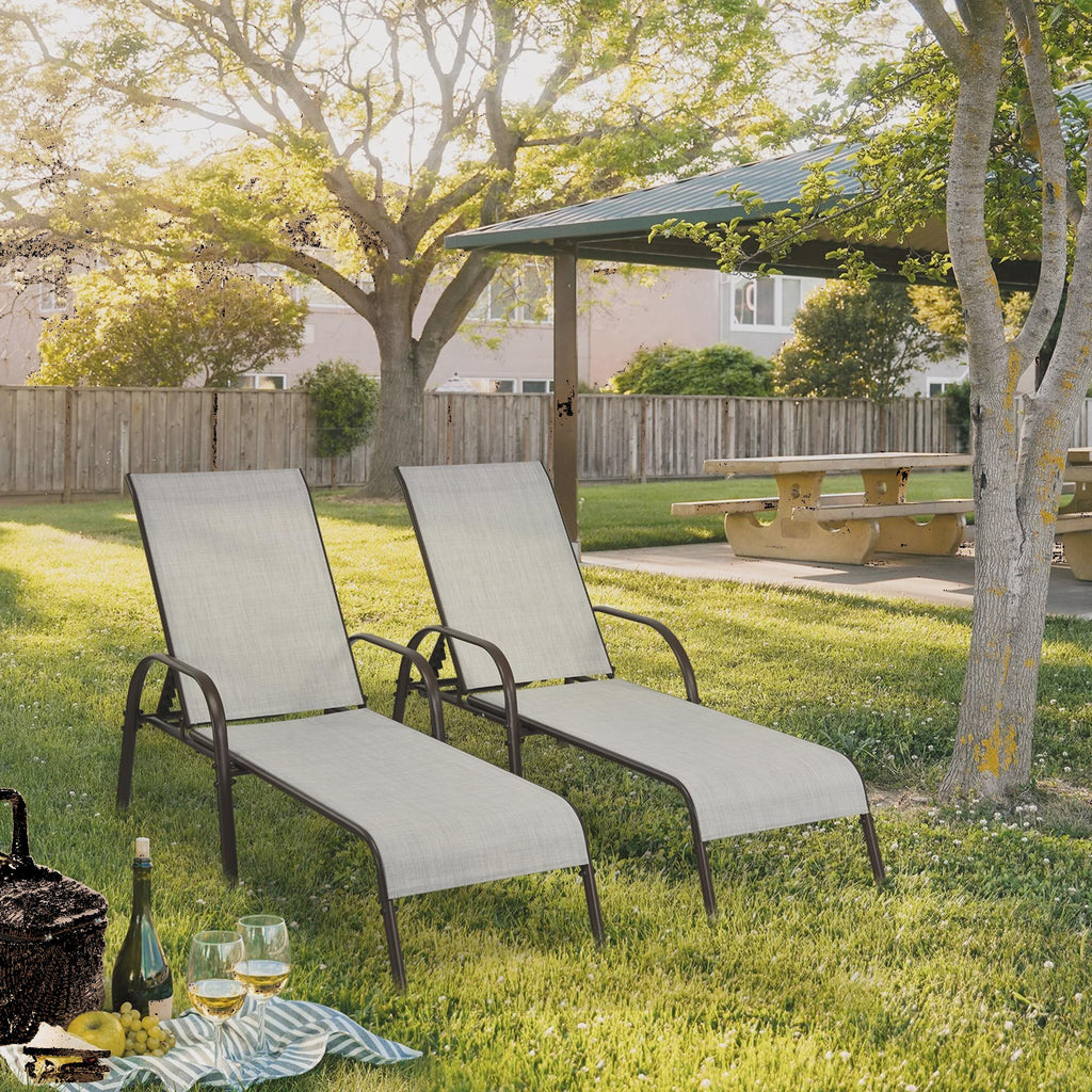 Gymax 2PCS Adjustable Chaise Lounge Chair Recliner Patio Yard Outdoor w/ Armrest Grey