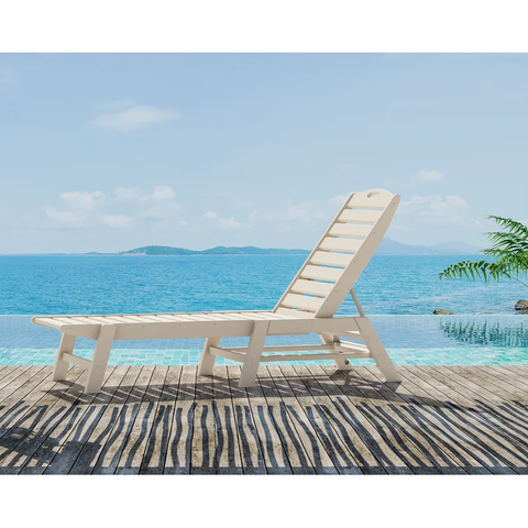 Bring the seaside to your outdoor space with the Nautical chaise. This spacious chaise is contoured to fit your body and because it's armless, it provides easy access to ultimate relaxation. With a convenient handle on the headrest and the ability to fold.