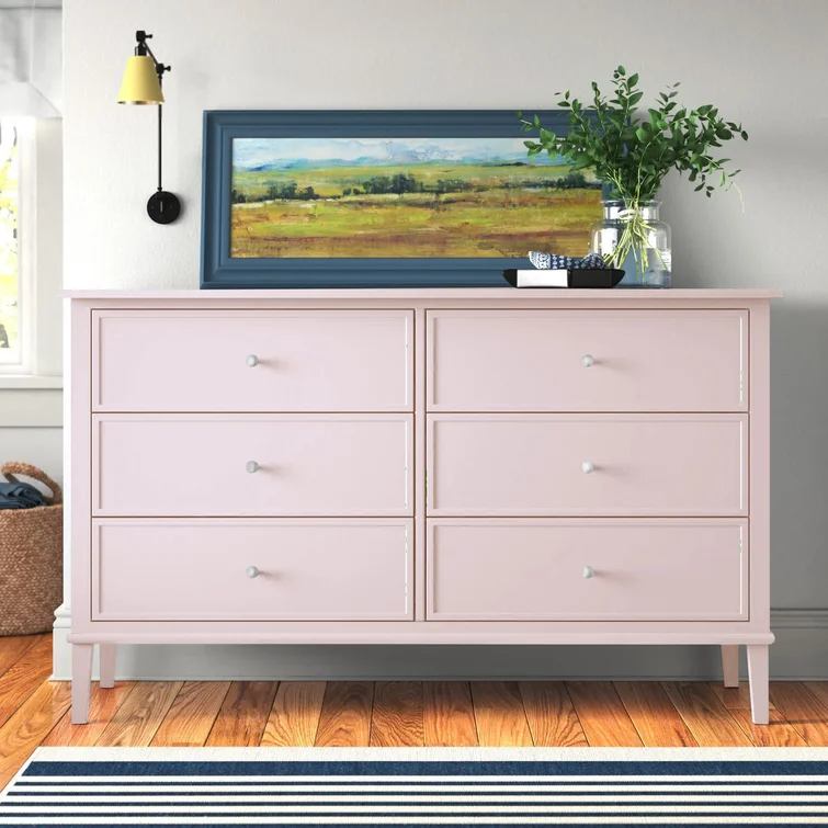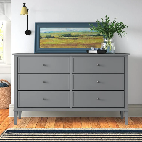 This 6-drawer dresser provides plenty of storage with a classic design that streamlines your space. It's made from engineered wood, and the six drawers provide a place for everything from sweaters to denim. We love that each drawer features picture frame paneling, accented with silver metal handles for a finishing touch. Plus, the safety stops on the drawers prevent fingers from getting pinched. We love that a wall anchor is included for extra stability and safety.