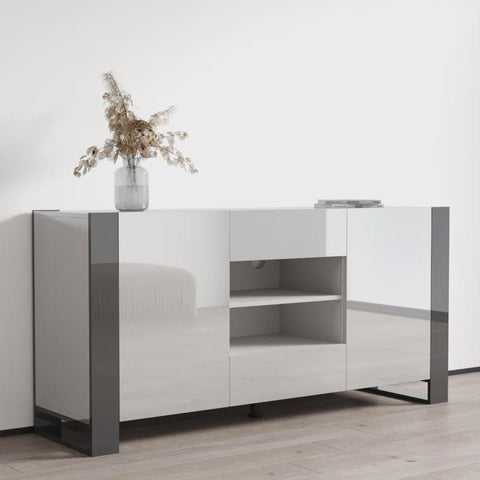 Woody modern sideboard—modern Togut 64.5" wide 2-drawer sideboard. High gloss fronts with a matte body. Manufactured in and imported from the European Union. Modern and unique contemporary design perfect for those in need of living room storage space. Flat packed and ready to ship.