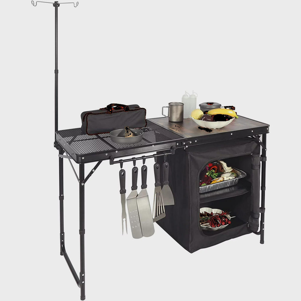 REDCAMP Portable Camping Kitchen Table with Storage Organizer and Hooks, Folding Camping Cook Station for BBQ, Party and Picnic