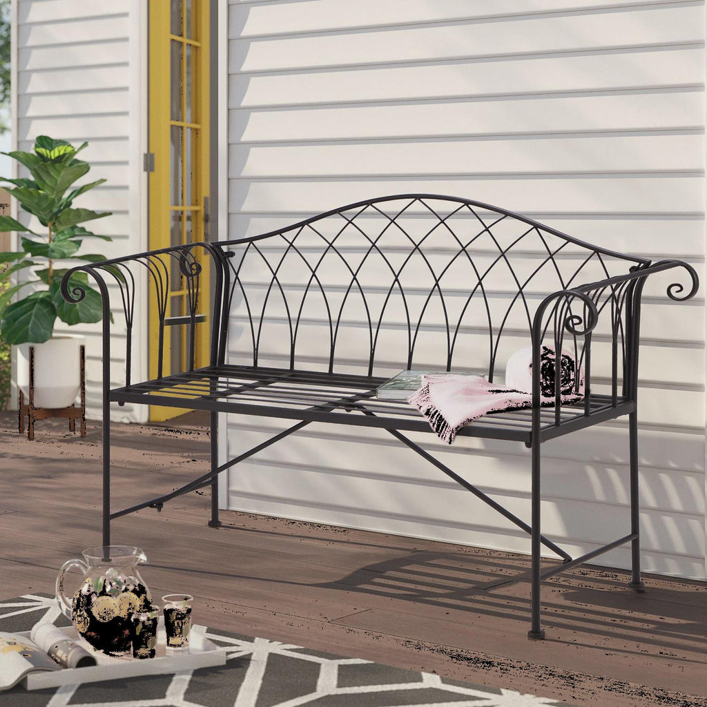 Outdoor Patio Garden Furniture Metal Bench, Loveseat Park Bench for 2 People, Black