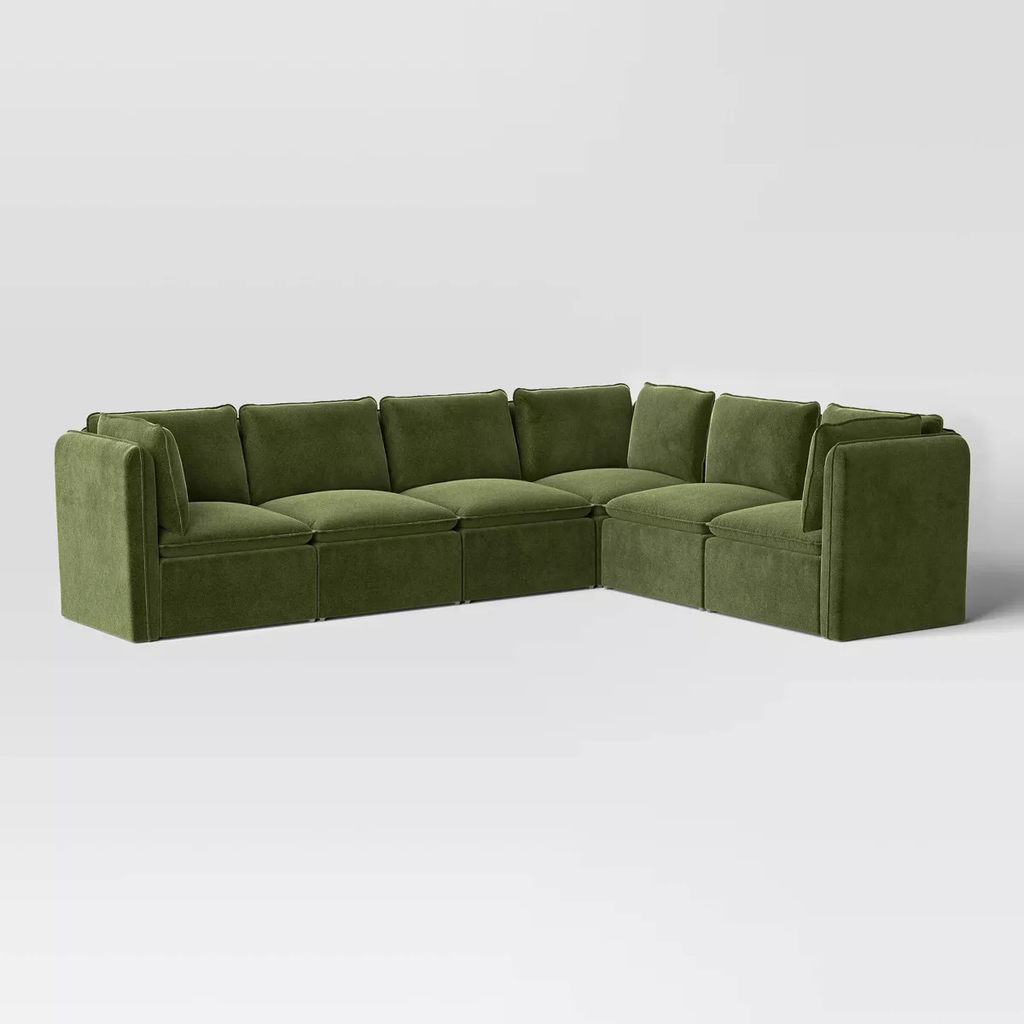 Upgrade your living space with this 6-Piece Haven French Seam Modular Sectional from Threshold™. This upholstered modular sectional set brings a clean-lined, modern look to your interiors. It includes three armless sectionals and three corner sectionals to create a cozy seating space whether you're entertaining friends, reading a book or watching TV.