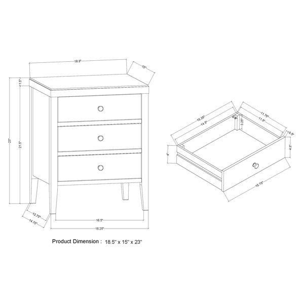 This 3-drawer nightstand keeps bedside essentials right within reach. The clean-lined frame is made from solid and engineered wood with a finish of your choice, and it rests on slightly tapered legs. Three drawers with round handles open to reveal room for reading glasses, books, and chargers. This nightstand features an 18.5" wide surface that accommodates a table lamp and a few accent pieces. It also measures 23" tall, making it ideal for smaller spaces. But the best part? This nightstand arrives fully assembled, no toolbelt needed.