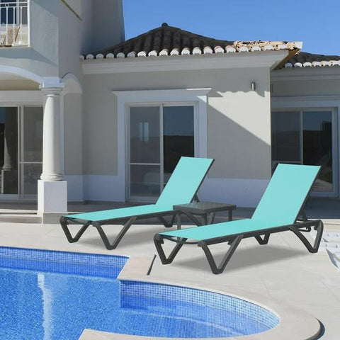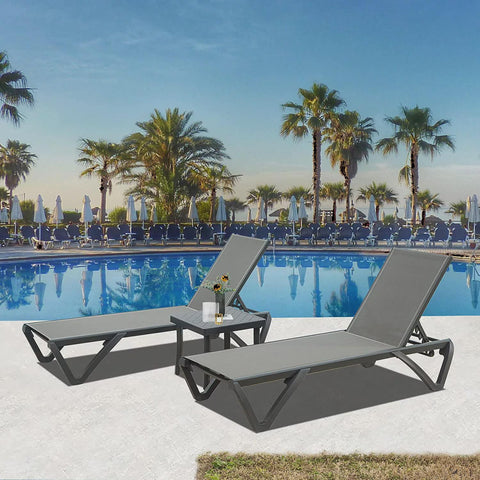 Domi Pool Lounge Chairs Set of 3, Adjustable Aluminum Plastic Outdoor Chaise Lounge with Side Table