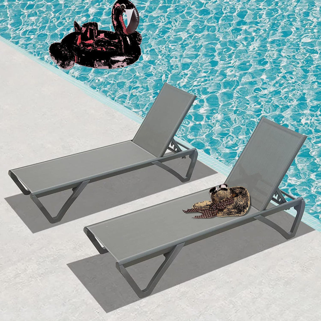 - [Sturdy And Durable Frame] The modern chaise lounge outdoor is constructed with dark grey rust-resistant aluminum frame. With high quality plastic triangular Legs,domi chaise lounge can support with max weight 380lbs.