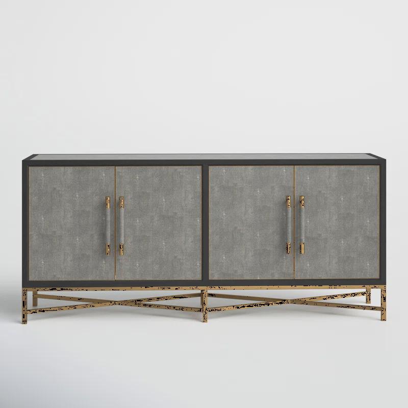 This Sideboard is a classy affair of solid oak. Brass legs and handles instill this piece of furniture with a feeling of elegance and warmth. The cabinet is finished off with a matte lacquer for an understated look because it speaks for itself.