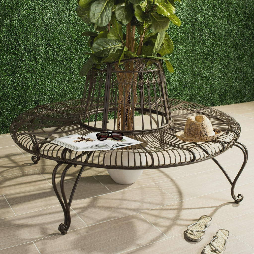 Safavieh Ally Darling Metal Outdoor Tree Bench in Rust Brown