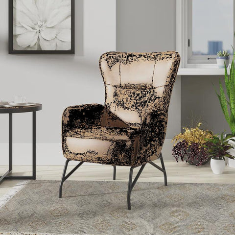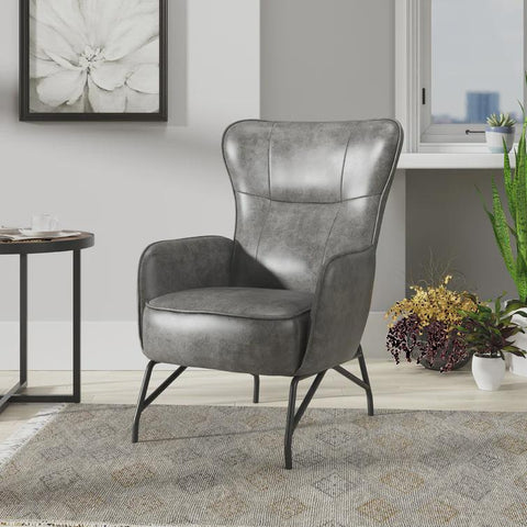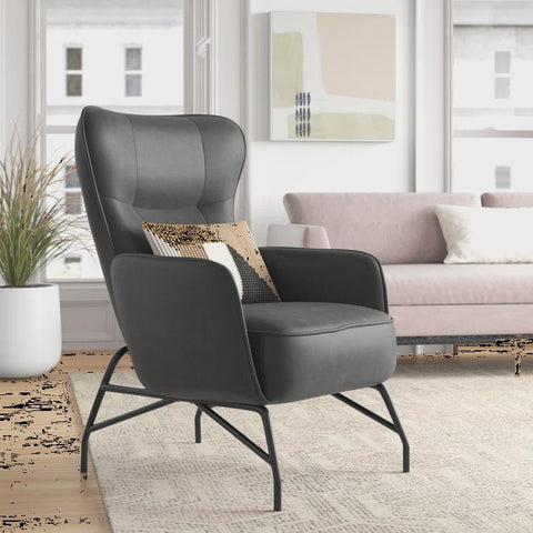 • This accent chair has soft upholstery atop metal legs for a rich, inviting look.