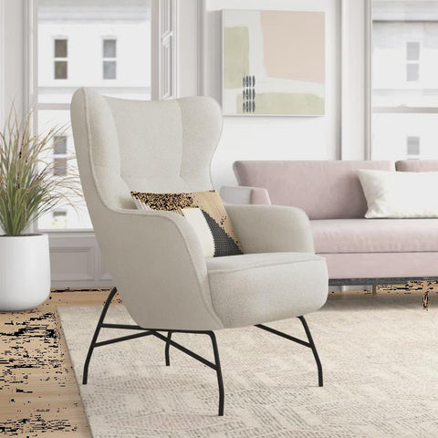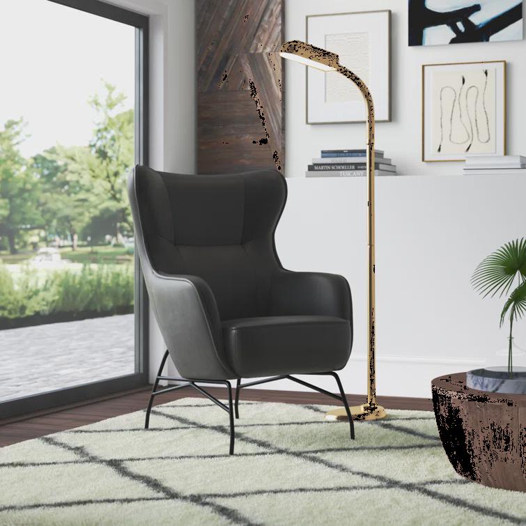 Add modern elegance to your space with this posh armchair. The frame is made from solid and engineered wood. It sits on slightly splayed metal legs that complement the durable upholstery showcasing a curved silhouette that works well in any contemporary setting. Its foam-filled upholstery adds comfort and support while a neutral hue allows it to blend with a variety of color schemes. The sturdiness of this armchair along with its upholstery creates an easy-cleaning exterior that makes it unique among armchairs.