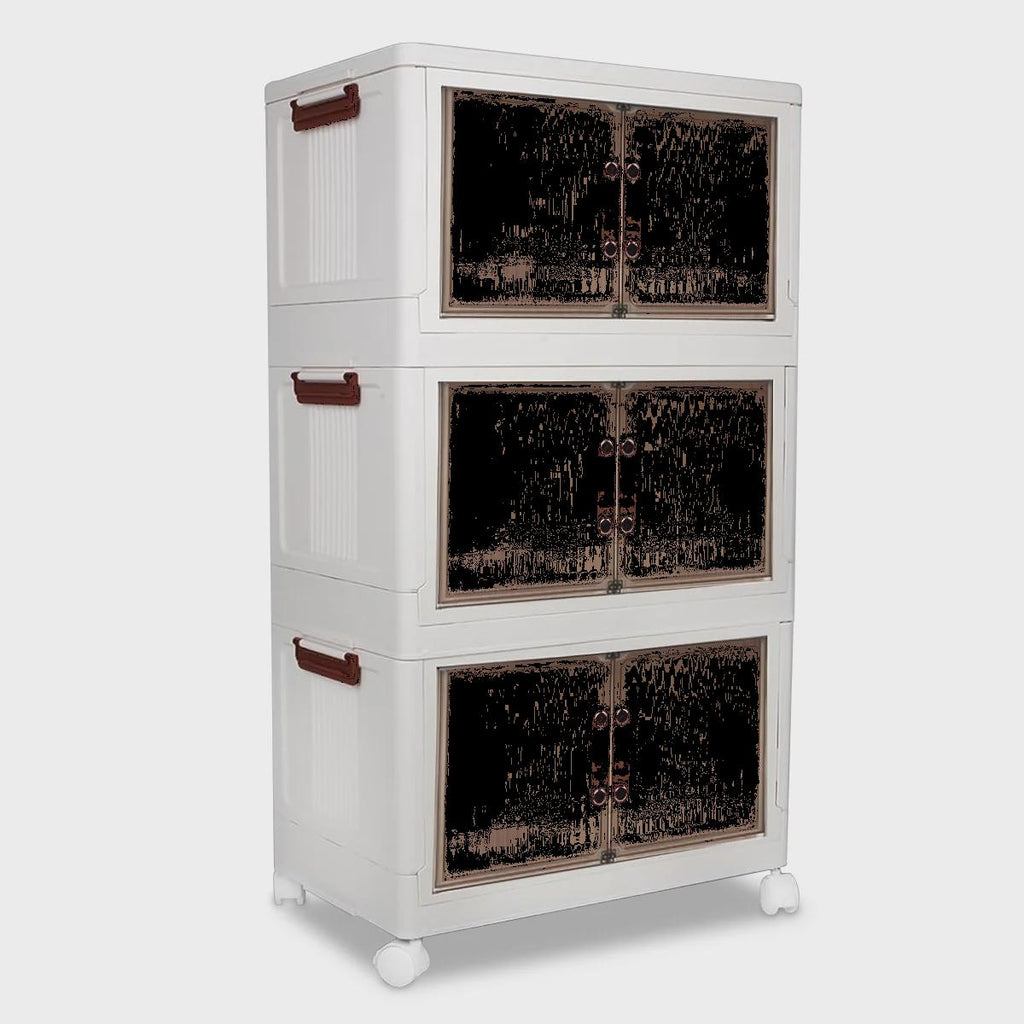 Stackable Storage Bins, 96Qt Storage Boxes with Lids and Doors, 3 Tier Closet Organizers with Wheels, Collapsible Folding Storage Box for Bedroom Kitchen Study Office, White