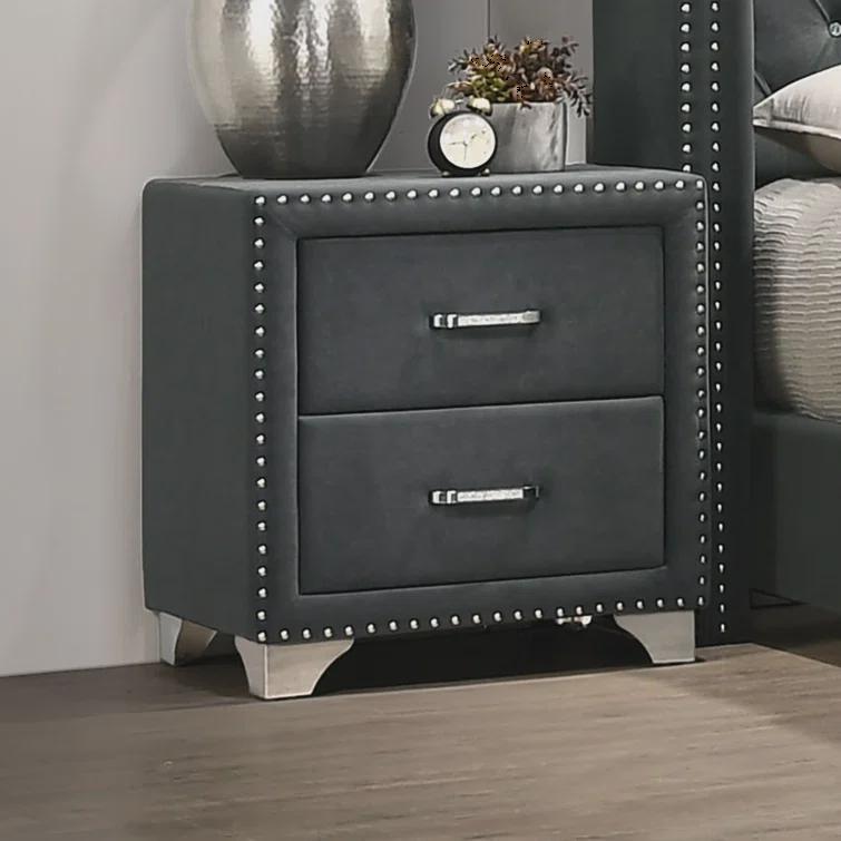 You've never seen furniture so elegant until this nightstand entered the picture. Entirely upholstered in velvet, this nightstand is a conversation starter. It has two spacious drawers to store your bedside items. Nail head trim makes a glorious statement that matches the tapered legs. With its stunning and regal design, this nightstand will make your sleeping space feel like royalty.