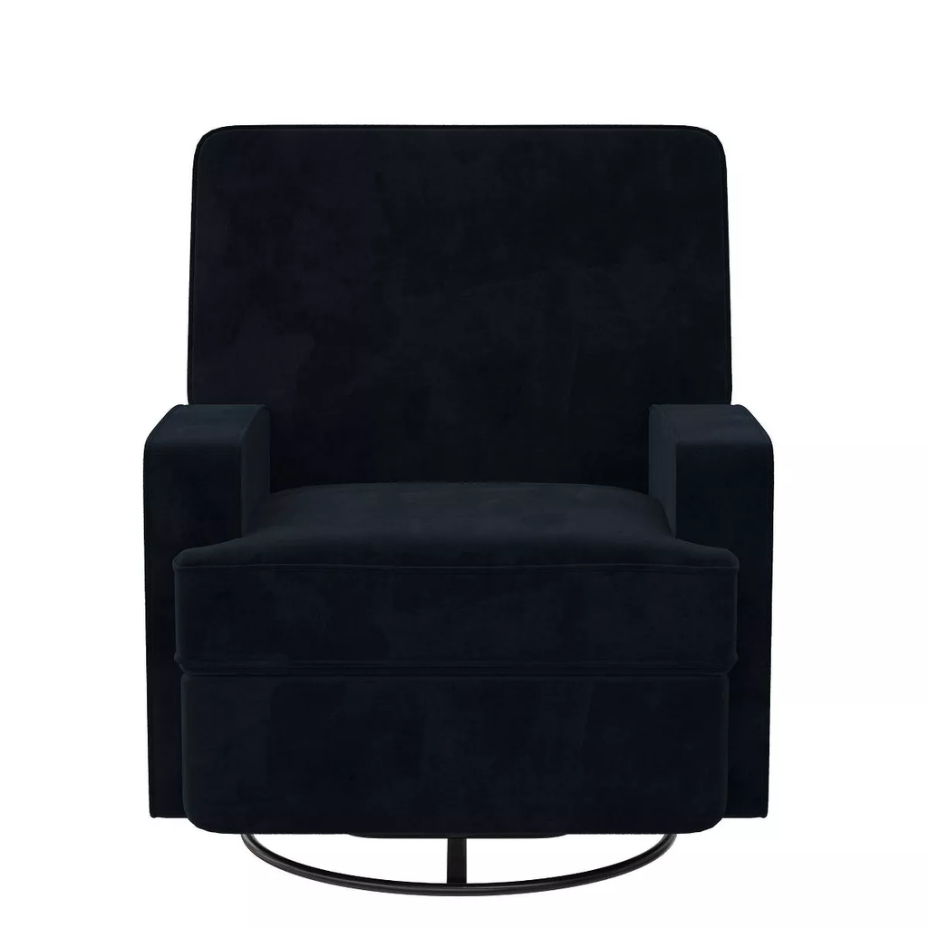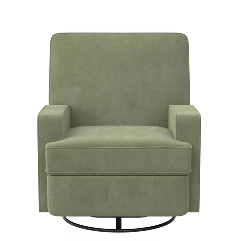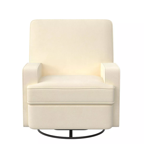 The clean lines and sleek style of the Baby Relax Addison Swivel Gliding Recliner will add a contemporary touch to your nursery. A streamlined silhouette, comfortable track arms and soft cushion back make the Addison ideal for feeding, bonding, and rocking your baby to sleep. Find your preferred comfort position with the smooth gliding action, 360-degree swivel, and multiple position recline options. Built with safety in mind, the Addison’s hidden hardware keeps little curious fingers away from the sliding mechanism. The combination of classic style, sink-in comfort and velvet-like twill fabric make the Baby Relax Addison Swivel Gliding Recliner a wonderful choice for your nursery today and for any room in your home in the future. Overall Height: 39.5 inches Overall Width: 33 inches Overall Depth: 35.5 inches Fully Reclined Height: 32.5 inches Fully Reclined Depth: 62 inches Fully Reclined Foot Rest Height: 20.5 inches Seatback Height: 22.5 inches Seatback Width: 30.5 inches Seat Depth: 21.5 inches Seat Width: 20.5 inches Floor to Seat: 19.5 inches Floor to Top of Armrest: 23.5 inches Armrest Width: 5.5 inches
