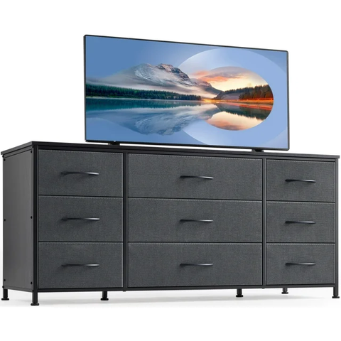Looking for a TV Stand AND a Storage Solution for your bedroom or living room? Looking no further than this EnHomee large dresser with 9 drawers tv stand dresser! Roomy storage dresser with 9 drawers provide you ample space to organize stuffs within reach while working functionally as a tv stand or entertainment unit!