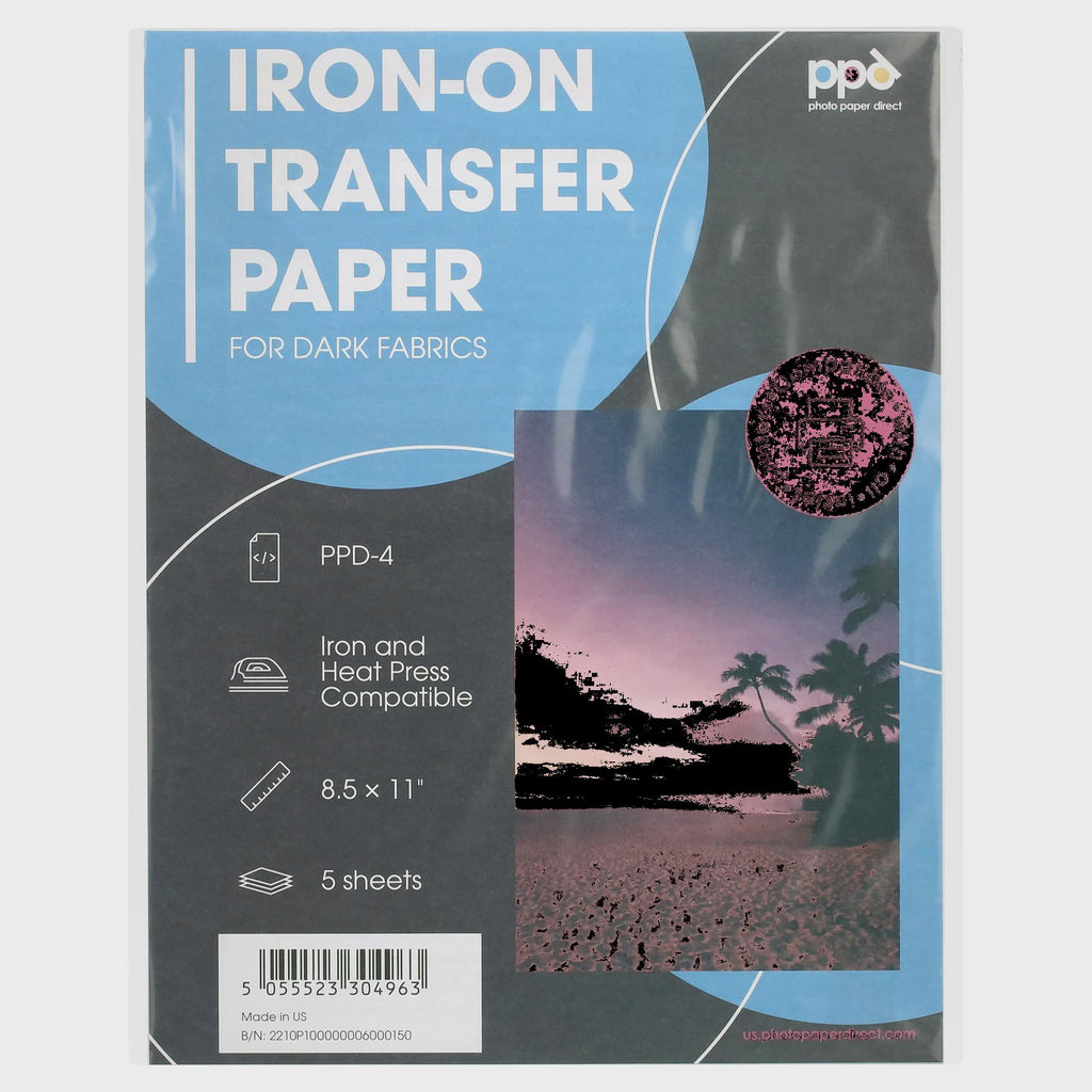 PPD Inkjet Iron-On Dark T Shirt Transfers Paper LTR 8.5x11" Pack of 5 Sheets (PPD-4-5)