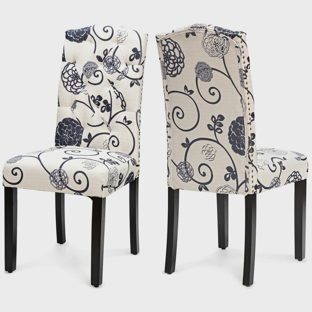 Set of 2 Tufted Dining Chair Upholstered Nailhead Trim Rubber Wooden Leg