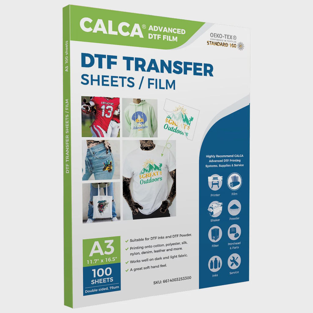 CALCA DTF Transfer Film A3 PET Film Direct to Transfer Film Heat Transfer Paper 100 Sheets Double Sided Hot Peel for DIY T-Shirt Print 11.7" x 16.5"