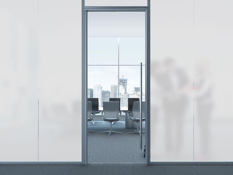 Deep Etch. Translucent, colorless, embossed vinyl film. Simulates Sand Blasted glass. Provides excellent privacy and allows plenty of light to pass through.