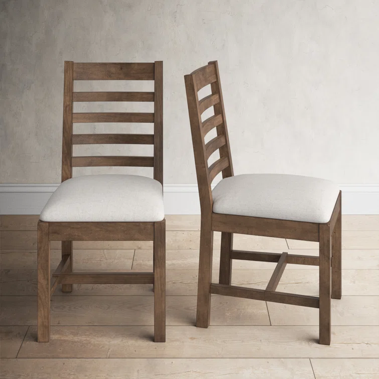 Arriving as a 2-piece set, this side chair is ready to instill a feeling of rustic charm in your dining room or main living area. Characteristic ladder backs are a classic touch, while the distressed brown finish brings a warm and well-loved look we love to your space. It's crafted from kiln-dried solid wood, and the seat is lined with foam-padded polyester to provide comfort and support as you enjoy some tea and good conversation.