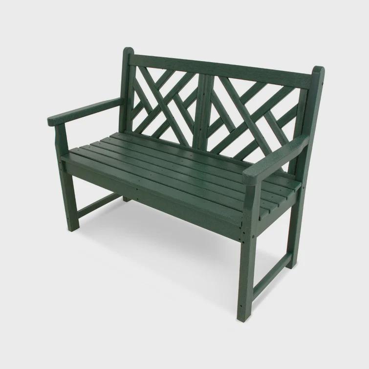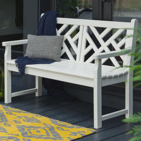 Whether it's on the deck or in a special corner of the garden, the Chippendale plastic bench will add a touch of elegance and style to your outdoor living space thanks to the intricate design on the backrest.
