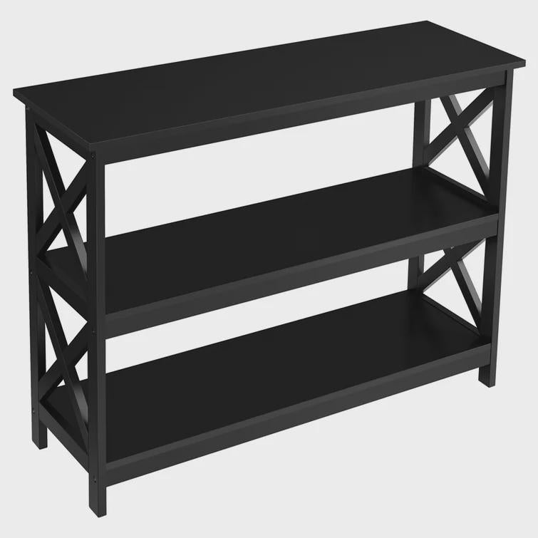 - High quality: The shelved console table is constructed of high-quality material, sturdy and durable to use, making it last for years; the surface has a smooth dirt-proof coating, easy to clean; the top-shelf max load capacity is 25kg/55.1lb, and shelf load capacity is 12kg/26.5lb. The X structures on both sides are made for enforcement.