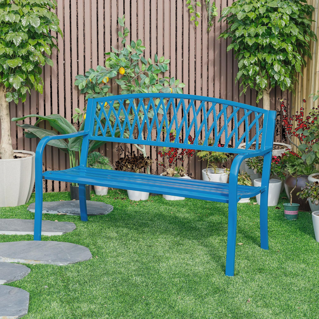 blue Horizon Escape- Steel and Cast Iron Garden Bench for Relaxation