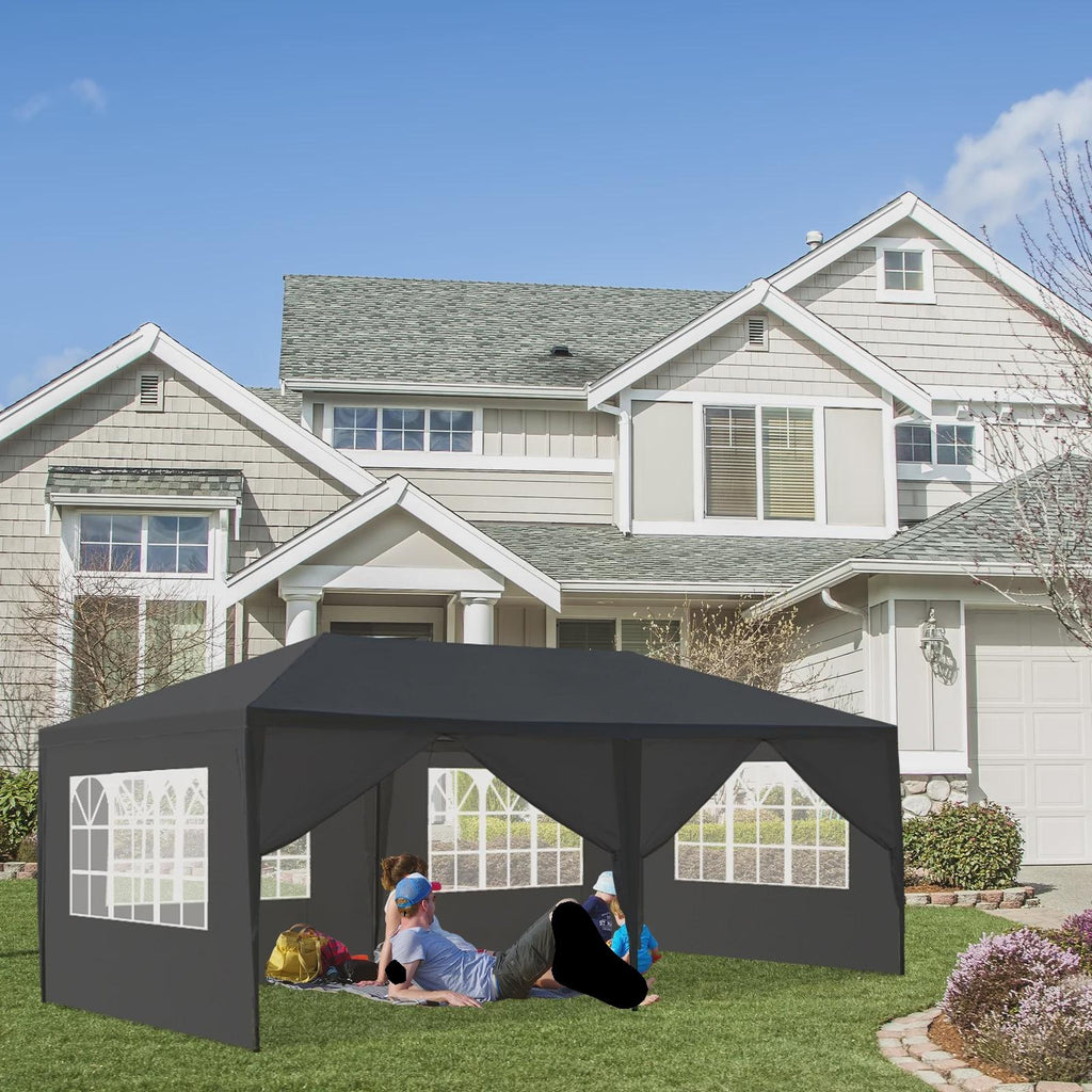 SamyoHome 10' x 20' Canopy Waterproof Party Tent Outdoor Tent 6 Sides Black