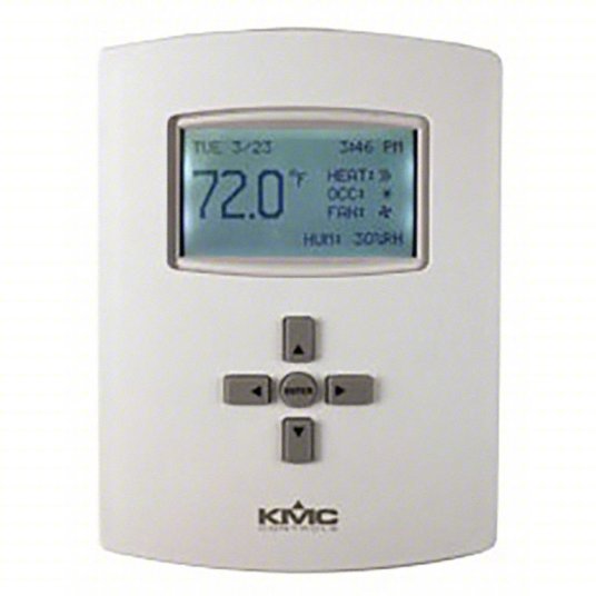 These thermostat controls communicate with BACnet IP (Building Automation Control Networks Internet Protocol) systems. BACnet/IP is a network protocol that allows multiple devices to communicate across building automation systems using Ethernet to send signals directly to a device, so these thermostats communicate faster than BACnet MP/TP thermostats. BACnet/IP systems also allow for more controllers per network, so users can scale up installations of thermostats across more rooms. These thermostat controls can also be used for standalone, noncommunicating applications. They provide remote monitoring and programmable temperature control for common HVAC equipment in commercial buildings.