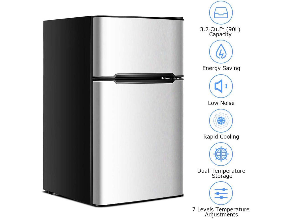 Mini Fridge with Freezer, 3.2 Cu.Ft Compact Refrigerator with freezer, 2 Door Mini Fridge with freezer, Upright for Dorm, Bedroom, Office, Apartment- Food Storage or Drink Beer, Silver