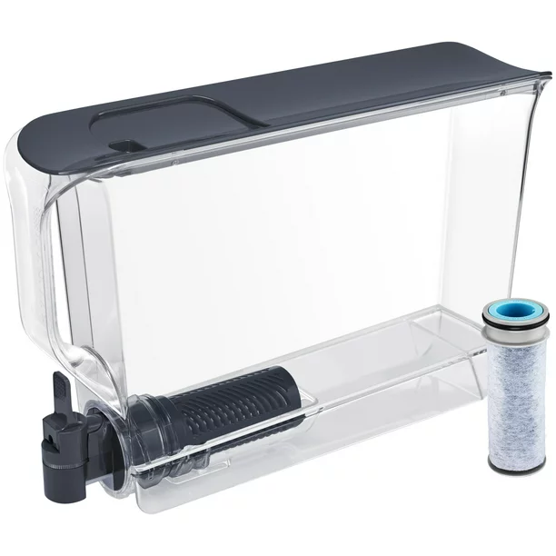 The Brita Ultraslim Dispenser is our largest capacity dispenser with a space efficient design that fits in most fridges. The water dispenser with filter holds 25 cups (1.56 gallons), which makes it great for larger households and means fewer trips to the sink. The dispenser filters as you pour reducing chlorine (taste and odor) and more. The Brita Ultraslim Dispenser uses SmartLight Filter Indicator technology, to make it easy to know when to change your filter. The LED sensor glows every time you dispense water-green means your filter is good and when the indicator flashes red its time to replace your water filter. For cleaner, great-tasting water, the Brita filter should be changed every 40 gallons, about 2 months for the average household, for best results. The Brita Ultraslim Dispenser makes it easy to stay hydrated while reducing single-use plastic bottle waste.