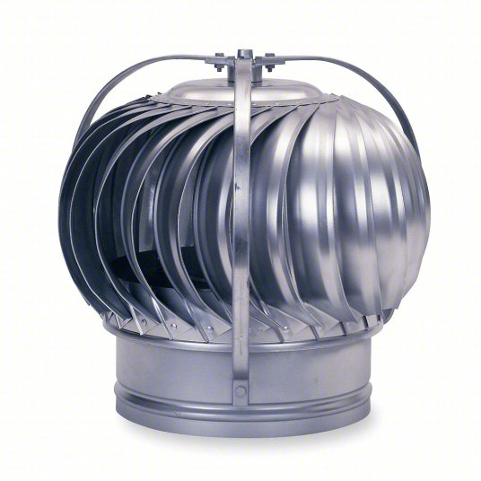 Wind-Driven Turbine Exhaust Ventilator: 10 1/4 in Head Dia, 4 in Throat Dia, 126 cfm @ 4 mph, Steel