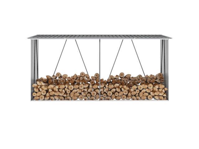 Garden Log Storage Shed Galvanized Steel 129.9" Gray Outdoor Firewood