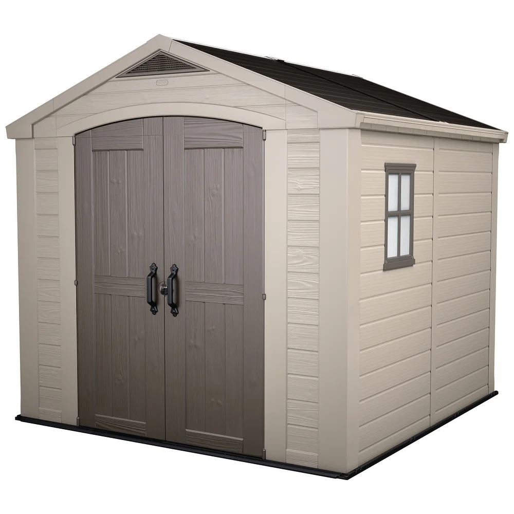 Keter Factor 8x8 Foot Large Resin Outdoor Shed with Floor Taupe Brown