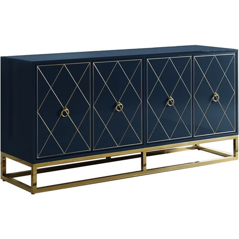 This sideboard has a modern-like feel to it that would look good in any dining room, available colors in grey, navy, and white with gold plated legs. This sideboard can also be used as a TV stand to hold any flatscreen TV. Versatile and gorgeous is what best describes this item!