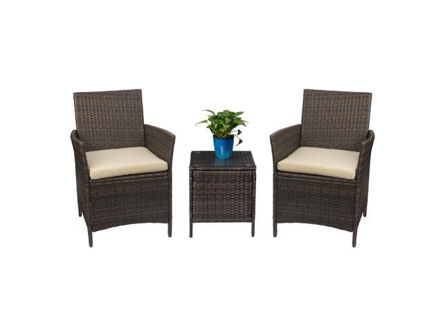 Devoko Patio Porch Furniture Sets 3 Pieces PE Rattan Wicker Chairs with Table Outdoor Garden Furniture Sets (Brown/Beige)