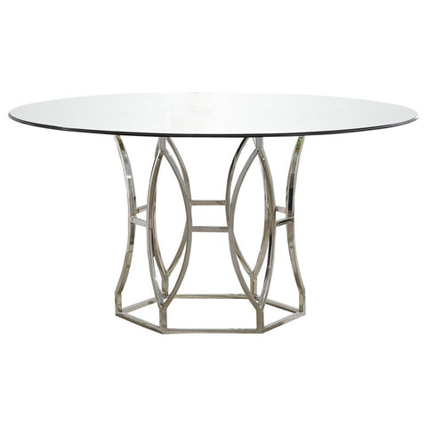 Enhance your dining room with this sleek and glamourous dining table. This round dining table is well constructed with stainless steel base, 54 inch glass top, and the glass top is 1/2" thick. It features clean lines with a contemporary design to finish in the stunning stainless steel base.
