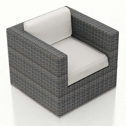 The District Swivel Glider by Harmonia Living features clean lines, premium synthetic wicker and brushed aluminum feet, giving it a fantastic modern look. The chair includes comfortable cushions covered in Sunbrella® fabric, the industry leader in mildew- and fade-resistant outdoor fabrics. Each strand of the piece’s High-Density Polyethylene (HDPE) wicker is infused with a rich Textured Slate color and UV protection, giving it long-lasting color despite the elements. The seat is triple reinforced for lasting durability and features a gentle, swiveling motion. Each piece also features a thick-gauged aluminum frame that is corrosion resistant, giving this piece fantastic structural integrity. Underneath the piece are plastic glides, allowing you to conveniently rearrange the set freely without worrying about scuffing your patio surface.