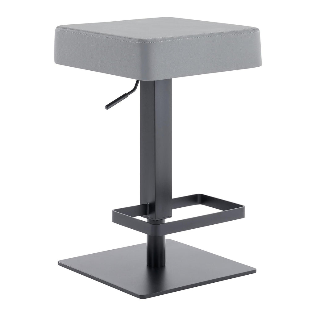 • Dwyn Contemporary Adjustable 25-33.5 in. Swivel Barstool in Matte Black Finish and Grey Faux Leather