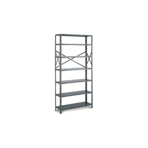 These rugged and dependable T-Bolt™ shelving units deliver real supporting strength for all types of storage uses. Quality shelving for heavy-duty storage solutions. Offset angle post support heavy loads and accommodate compression clips. Bolt-Type assembly for permanent and secure placement. Sturdy formed shelf is made from cold rolled steel and has "Triple Bends" on all four sides for incomparable strength. Features a rust resistant phosphatized cleaning for better paint adhesion and durability. Baked-on gray enamel finish. Closed units feature back and end panels. Starter units include 2 sway braces; Add-on units include 1 sway brace.