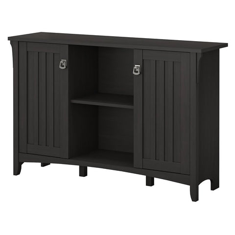 Complement the casual feel of your home with a storage solution designed for your convenience and comfort. The Bush Furniture Salinas Accent Storage Cabinet with Doors blends unique details and adjustable features for use in a variety of spaces. Place your favorite pictures, plants or a lamp on the spacious top while showing off additional decorations in the open cubby shelves below. Inspired by timeless Mission style, 2 doors with vertical wood accents and elegant Tumbled Pewter hardware conceal any items you don't want out in the open. The Storage Cabinet contains 3 adjustable shelves, 1 in the center and 1 behind each door. Tapered legs and curved base rails join your choice of 3 finishes to provide a comfortable country feel in the homes of today. The 2 Door Storage Cabinet is tested to meet ANSI/SOHO quality standards for safety and performance and is backed by a 1 year warranty.