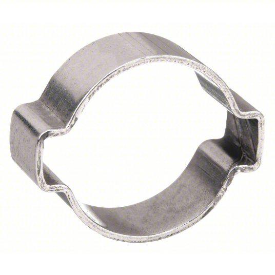 Double-ear clamps have two ear-shaped protrusions to crimp and provide more clamping range than single-ear clamps. They require a crimping tool, such as pincer pliers, to install. These clamps are suitable for industrial air or fluid line applications.