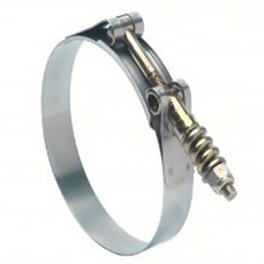 These self-tensioning clamps have a spring-loaded T-bolt assembly that adjusts to dampen vibration and maintains constant tension on tubing or hose in industrial applications.