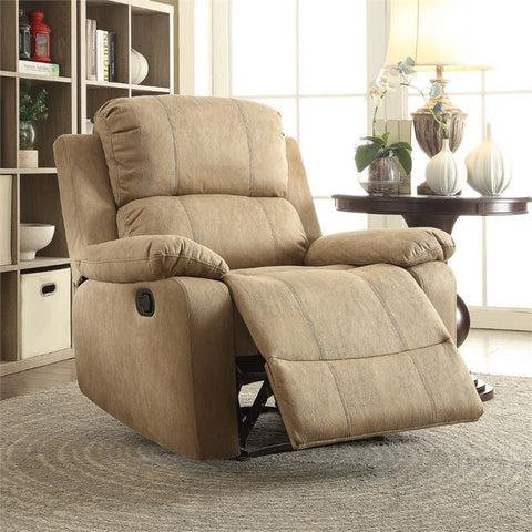 Incorporate style and comfort into your home with the Bina recliner available in multiple colors. It's ideal for placement in a cozy living room seating group. With its stitching detail and well padding, this piece gives you a suitable place for relaxation extending backward with the simple side lever. Place it in front of your TV or along the side your bed, pull the side tab and kick your feet up, you will unwind from the day's events.