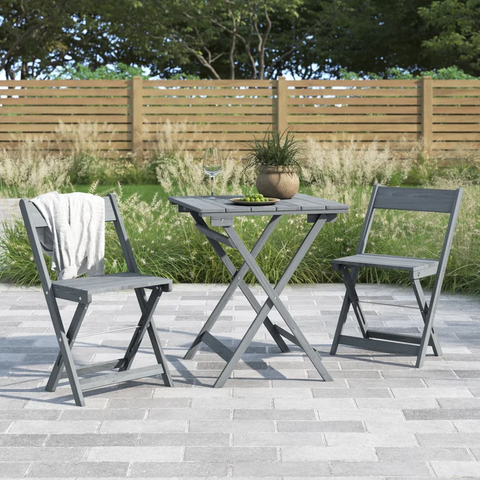 Coastal entertaining meets the open air with this 3-piece rattan outdoor bistro set. Made with solid acacia wood, it features two chairs and one table. This set features slat backs and rectangular silhouettes, with a solid-hued neutral finish that highlights the wood's natural grain. A square tabletop is great for holding your beverages or for alfresco meals, while the two chairs made for an intimate setting. Best of all, this set is UV-resistant – and all pieces are foldable for easy off-season storage.